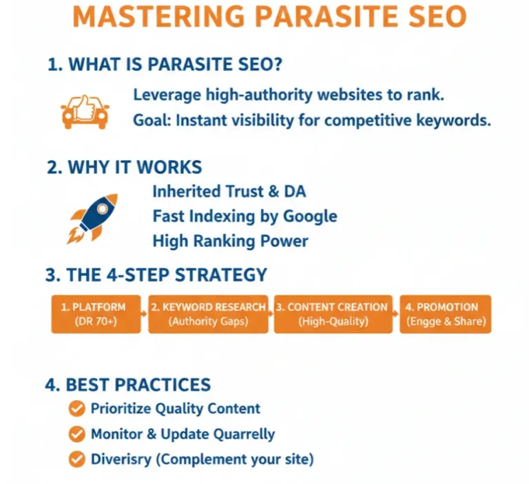 Parasite SEO is a search engine optimization strategy focused on publishing high-quality, intent-driven content on high-authority third-party platforms instead of relying only on a company’s own website. It is described as “parasite” SEO because the content leverages the authority, trust, and indexing strength of an established domain to achieve faster search visibility than a newer or weaker site typically can on its own.